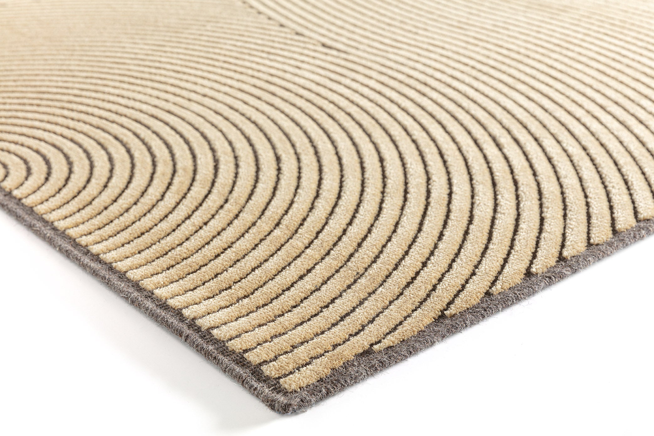 De luxueuze materialen—viscose, wol en polyamide—zorgen niet alleen voor duurzaamheid, maar ook voor een weelderig gevoel onder de voeten. De industriële en moderne esthetiek van dit geweven meesterwerk voegt een vleugje elegantie toe, terwijl de subtiele interactie van grijze en gouden tinten warmte en diepte aan uw decor brengt.