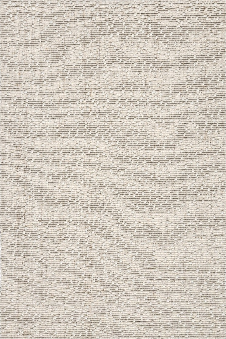 De Acsento Santorini Itsy Bitsy Ivory is een handgeweven wollen vloerkleed uit India met een verfijnde textuur en zachte uitstraling. De karakteristieke ‘pebble’-structuur met kleine wolbolletjes geeft een subtiel 3D-effect dat warmte en diepte toevoegt aan elk interieur.