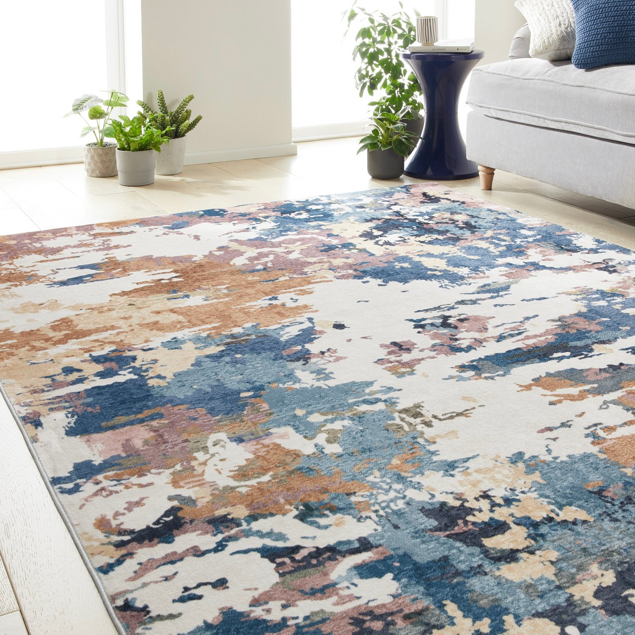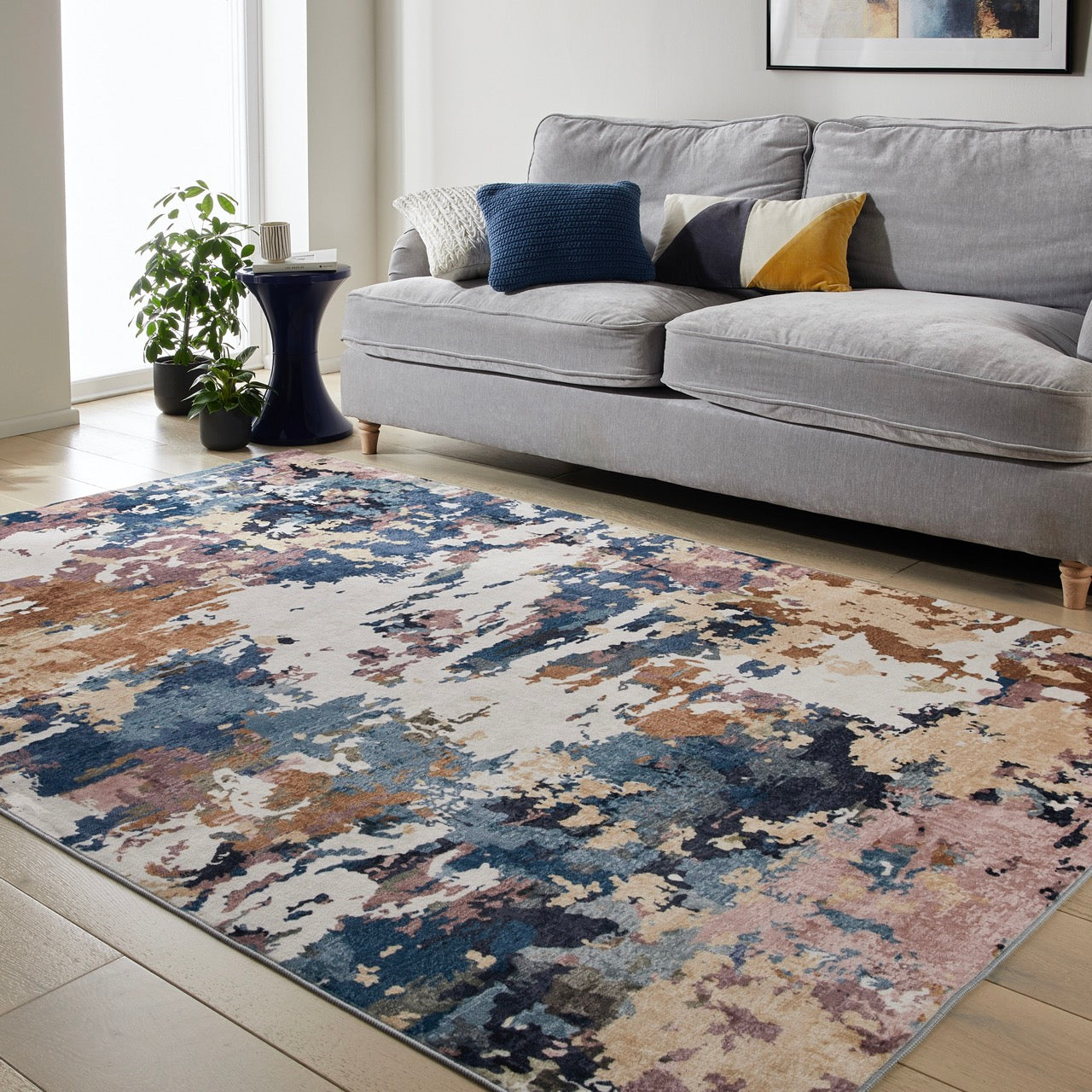 De Liberty LIB110 Cobalt brengt een krachtige mix van kobaltblauw, warm oker en zachte rosétinten samen in een abstract patroon dat de ruimte direct meer diepte geeft. De kleuren lijken als brede penseelstreken over het oppervlak te bewegen, waardoor het vloerkleed een artistiek maar toch rustig effect heeft. Dankzij het lichte, soepele materiaal voelt het modern en zacht aan onder de voeten.