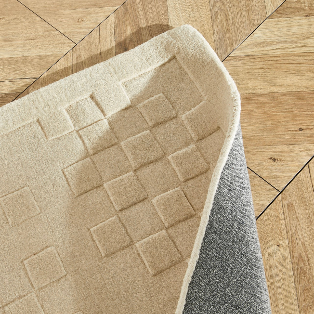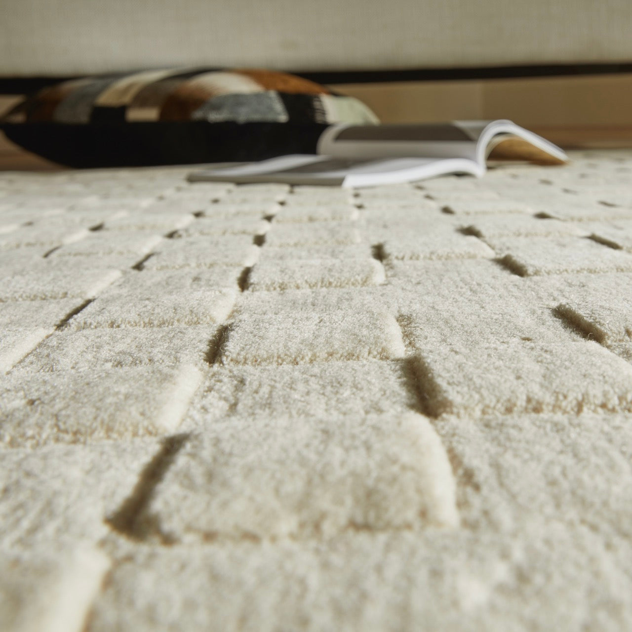 Dit vloerkleed is handgemaakt in India van hoogwaardige wol en heeft een volle, compacte pool. Het voelt zacht en comfortabel aan onder de voeten, maar blijft tegelijk stevig en geschikt voor dagelijks gebruik. De ingetogen carving voorkomt een vlak oppervlak en geeft het tapijt een discrete, luxueuze uitstraling.