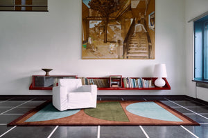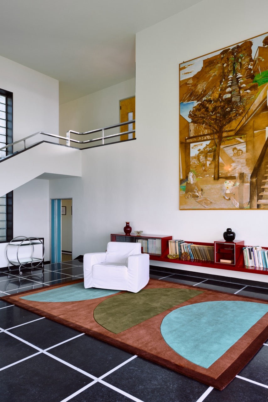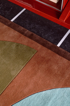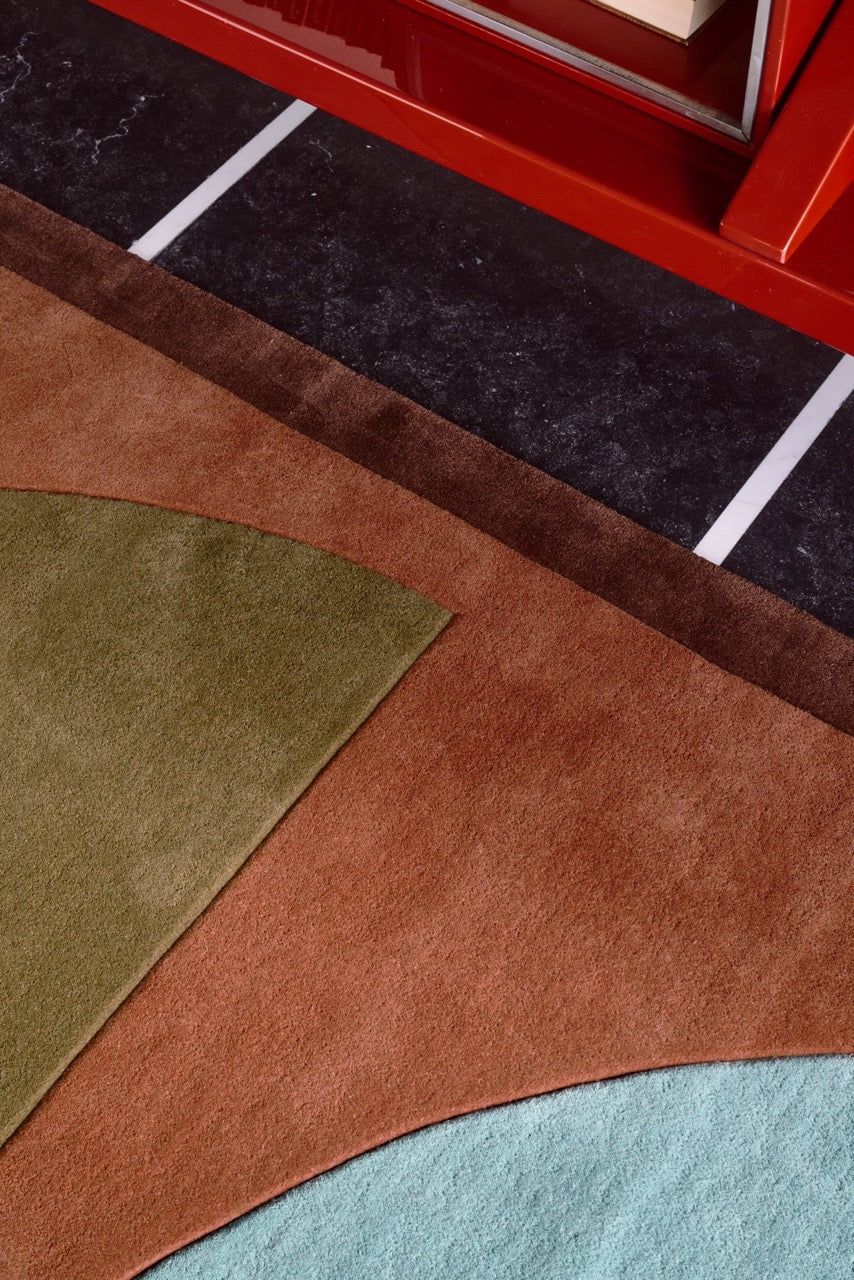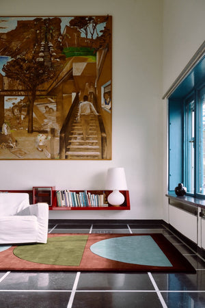 De Layered Gio Coppa Canella voelt als een echt designstuk, maar dan eentje dat je elke dag graag in huis hebt. Het geometrische patroon heeft die fijne retro knipoog, terwijl de kleuren net heel rustig en modern blijven. Warme canella-tinten, gedempt groen en zacht blauw vormen samen een compositie die je interieur meteen meer karakter geeft, zonder druk te worden.