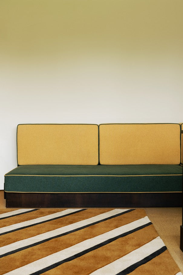 De Layered Teklan Diagonal Sand is een designer vloerkleed in wol, ontwikkeld in samenwerking met de Zweedse ontwerper en kleurarchitect Tekla Evelina Severin (Teklan). Het opvallende diagonale lijnenspel in warme zand- en cameltinten met een diep antracietaccent maakt dit een echt interieurstatement met karakter.