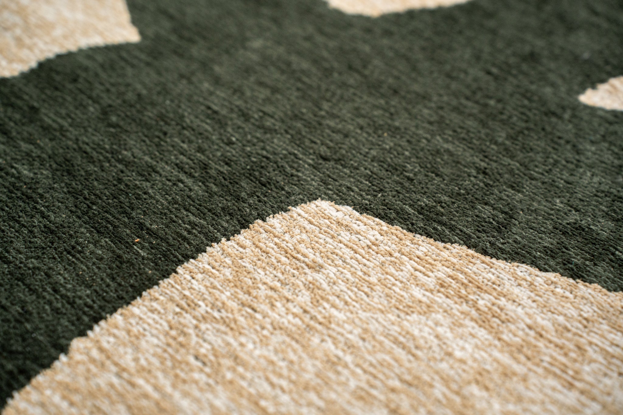 Stel je voor dat je op een zachte, luxueuze ondergrond stapt die niet alleen je decor verheft, maar ook comfort biedt onder de voeten. Gemaakt van duurzaam PET-materiaal, is dit tapijt ontworpen om dagelijks gebruik te weerstaan terwijl het zijn levendige groene tint behoudt.