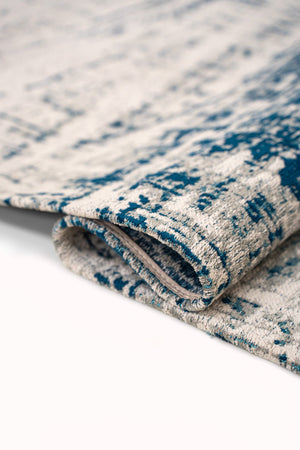 Transformeer uw ruimte met de Louis de Poortere Mad Men Griff Bronx Azurite tapijt. Dit prachtige stuk, vervaardigd in België, heeft een betoverend abstract ontwerp dat moeiteloos elke eetkamer, woonkamer of keuken verfraait.
