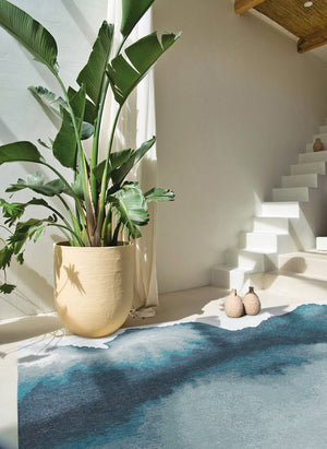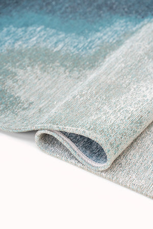 Transformeer uw ruimte met de Louis de Poortere Meditation Lagoon tapijt, een prachtig stuk dat moeiteloos stijl en comfort combineert. Gemaakt in België, heeft dit moderne abstracte ontwerp een betoverende blauwe tint die een serene touch toevoegt aan elke eetkamer, woonkamer of keuken.