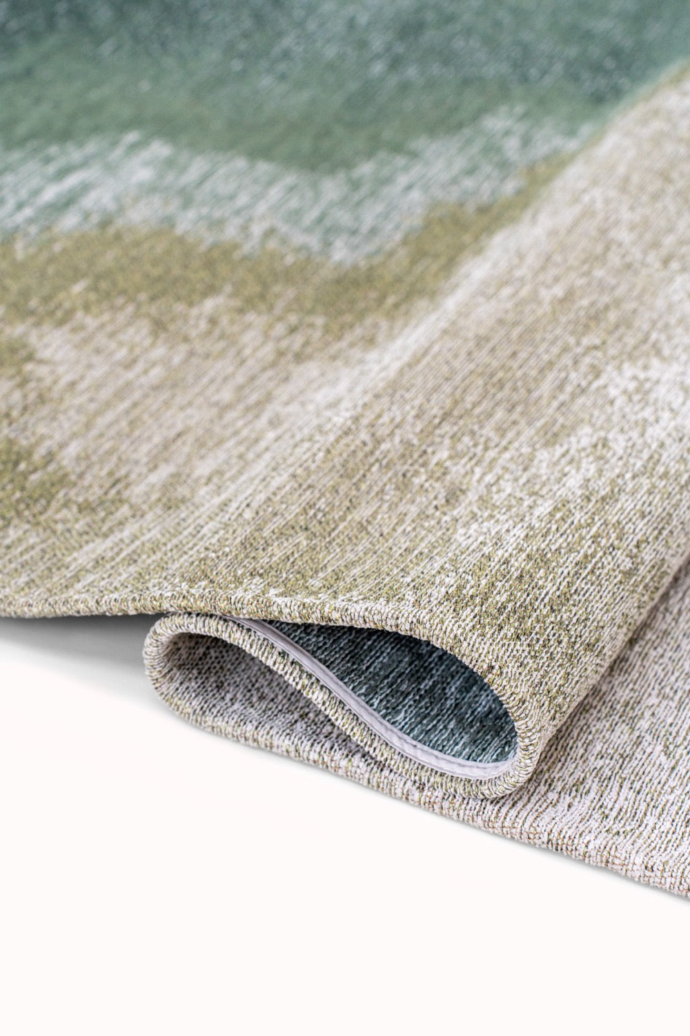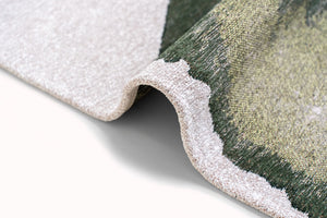 Stel je de kalmerende sfeer voor die dit abstracte ontwerp in uw huis brengt. De rijke groene tinten roepen een gevoel van rust op, waardoor een serene atmosfeer ontstaat die uitnodigt tot ontspanning en gesprek. De jacquard flatweave constructie voegt een vleugje verfijning toe, terwijl het een lichtgewicht gevoel behoudt, perfect voor elke kamer.