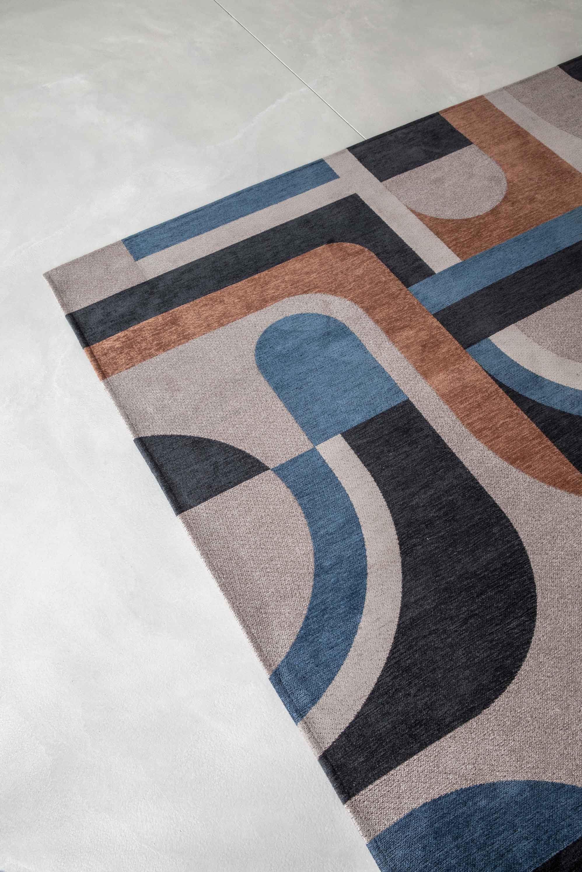 Stel je voor dat je op een zacht, geweven oppervlak stapt dat niet alleen je decor versterkt, maar ook comfort biedt onder de voeten. Gemaakt van duurzaam polyester, is dit tapijt ontworpen om dagelijks gebruik te weerstaan terwijl het zijn levendige geometrische patroon behoudt.
