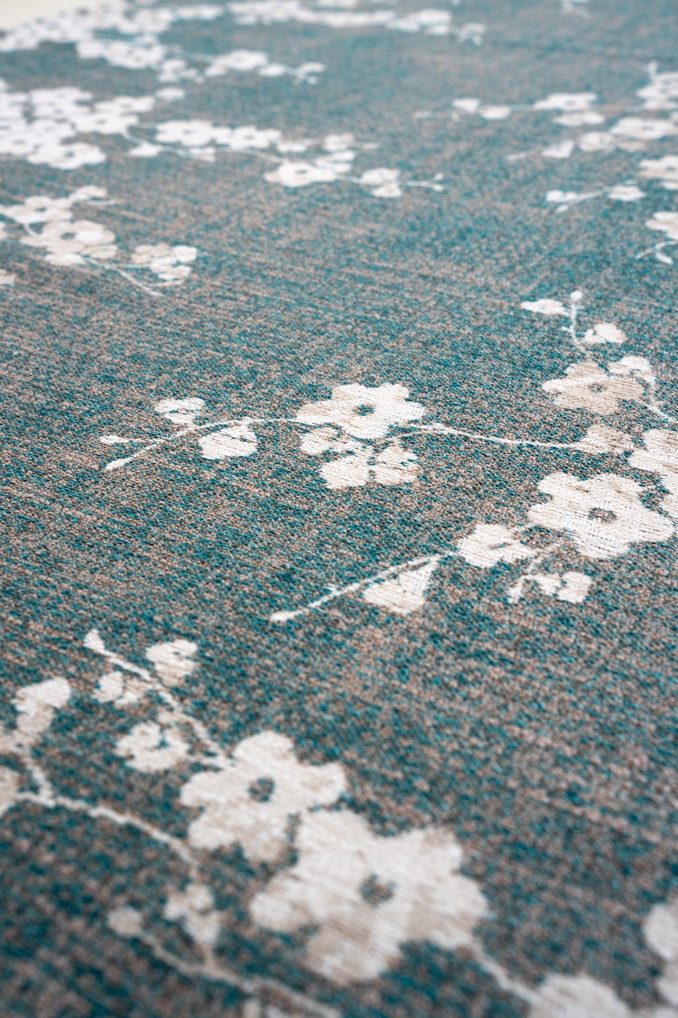 Transformeer uw ruimte met de Louis de Poortere Sakura Lake Blue tapijt, een verbluffende aanvulling die moeiteloos elke kamer verbetert. Gemaakt in België, dit moderne meesterwerk heeft een prachtig bloemontwerp dat een vleugje natuur binnenshuis brengt.