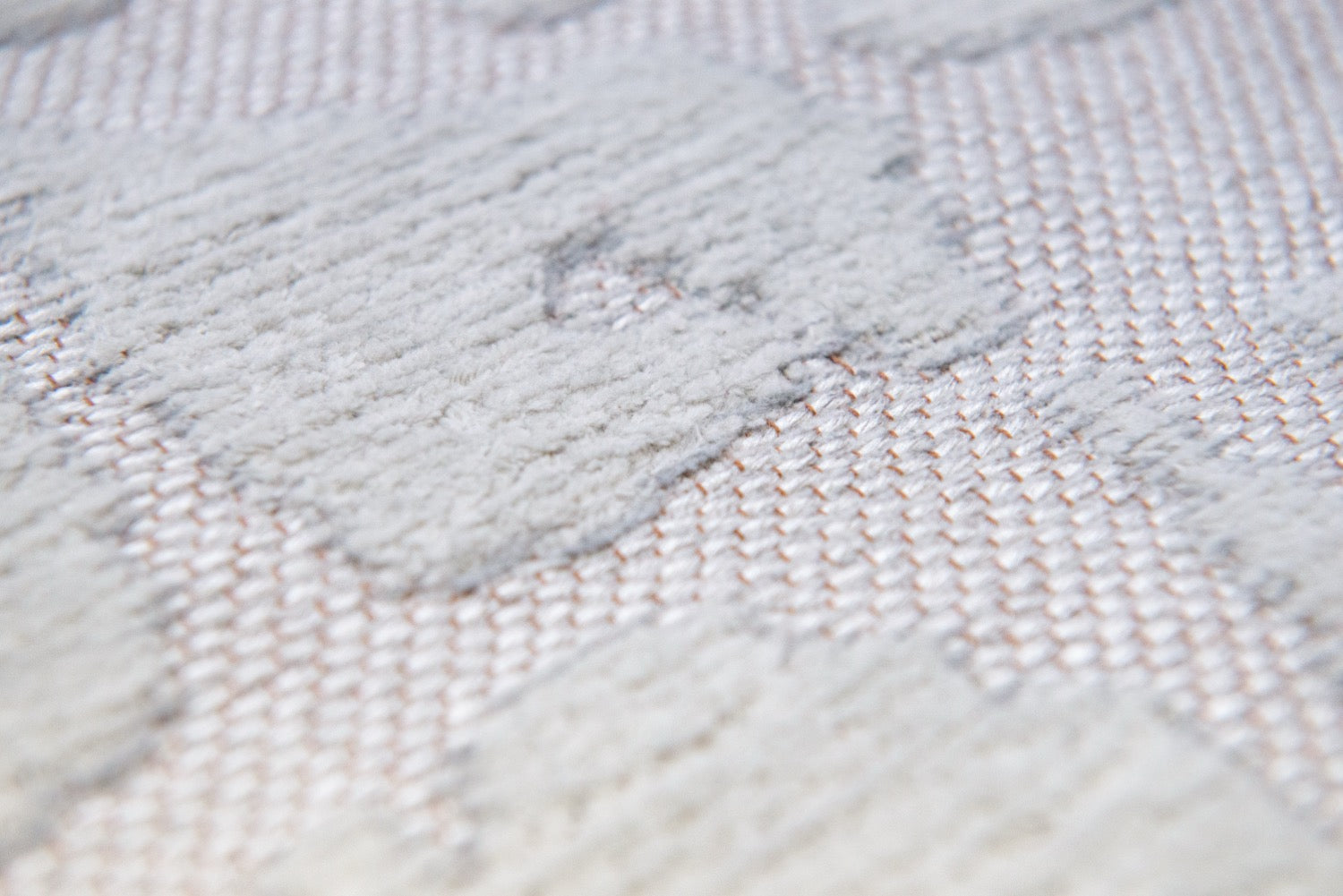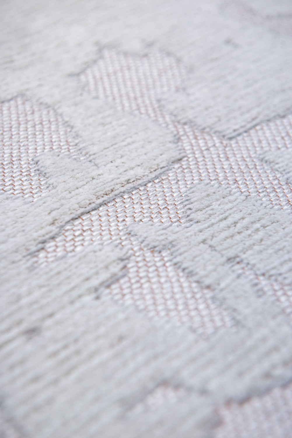 De elegante witte tint voegt een vleugje verfijning toe, verlicht elke kamer en creëert een serene sfeer. Of je nu een dinerfeest organiseert of geniet van een rustige avond thuis, dit tapijt verheft je ruimte, waardoor het uitnodigender en stijlvoller wordt.