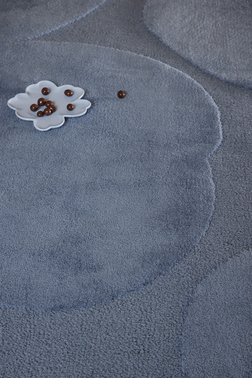 De poederachtige blauwtinten zorgen voor rust en balans. Het patroon blijft aanwezig, maar dringt zich niet op. Daardoor voelt dit vloerkleed tegelijk speels en volwassen aan, met een subtiele retroknipoog die perfect past in hedendaagse interieurs.
