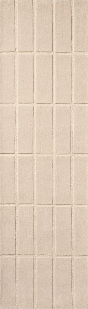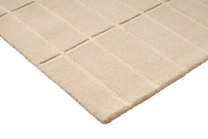 Het vloerkleed is gemaakt van 100% wol en heeft een dichte, aangename pool. De licht verhoogde rasterstructuur zorgt voor diepte en textuur en vangt het licht op een zachte manier. Daardoor krijgt het vloerkleed een ambachtelijke, bijna sculpturale uitstraling die perfect past in minimalistische, Scandinavische of Japandi interieurs, maar ook mooi contrasteert in meer uitgesproken settings.