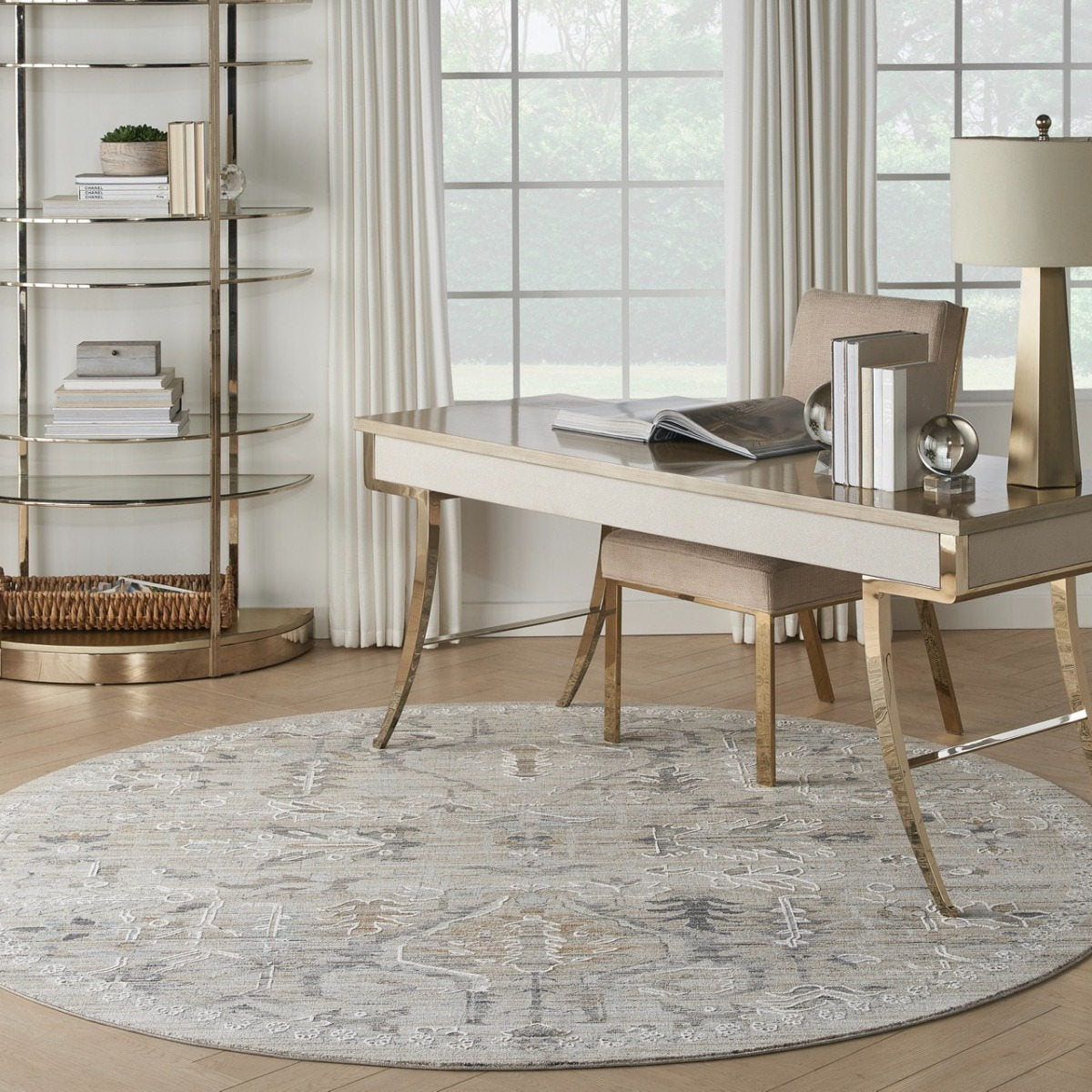 Transformeer uw ruimte met de Nourison Lynx Ivory Taupe LNX02 tapijt, een verbluffende aanvulling die moeiteloos vintage charme met klassieke elegantie mengt. Gemaakt van duurzaam polypropyleen, is dit geweven meesterwerk ontworpen om de tand des tijds te doorstaan terwijl het een vleugje verfijning toevoegt aan uw eet- of woonkamer.