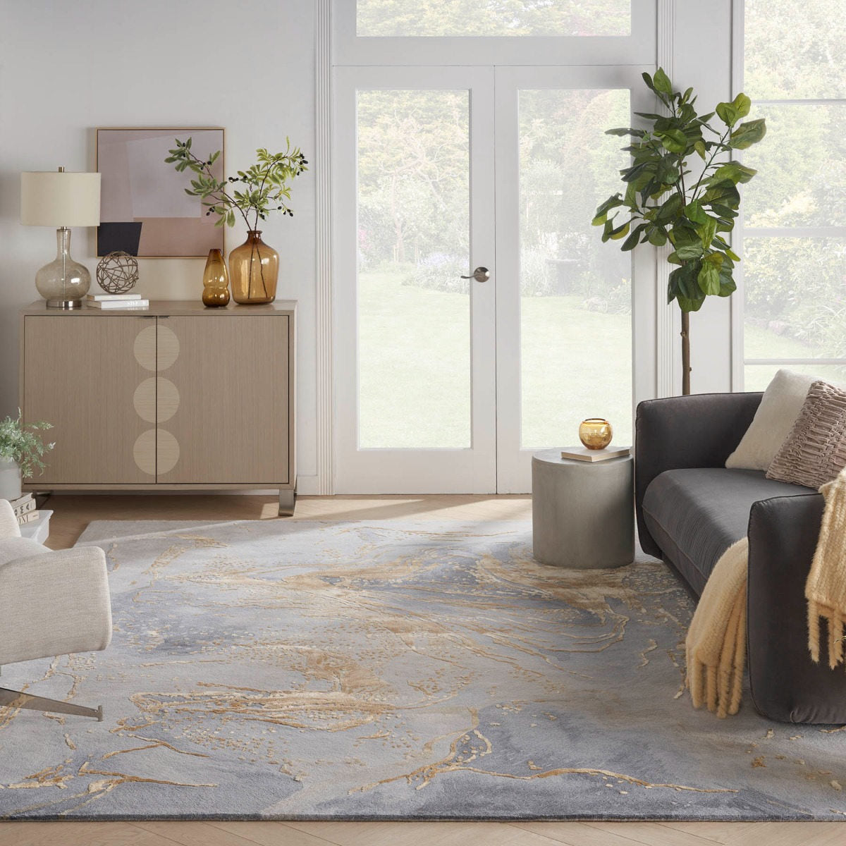 Verhoog uw ruimte met de Nourison Prismatic Grey Gold PRS28 tapijt, een verbluffende mix van modern design en industriële flair. Gemaakt van luxueus wol, is dit handgetufte meesterwerk niet alleen een aanvulling op de esthetiek van uw eet- of woonkamer, maar biedt het ook een zachte, uitnodigende ondergrond.